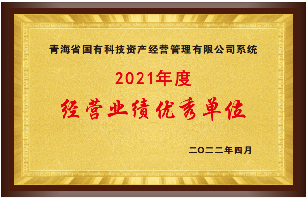 青海省國有科技資產(chǎn)經(jīng)營管理有限公司系統(tǒng)“經(jīng)營業(yè)績優(yōu)秀單位”,青海省國有科技資產(chǎn)經(jīng)營管理有限公司頒發(fā),2022年4月