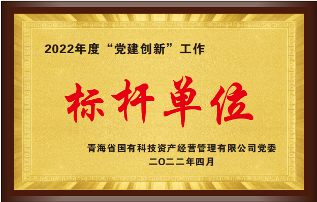 2022年度“黨建創(chuàng)新”工作標桿單位,青海省國有科技資產(chǎn)經(jīng)營管理有限公司黨委頒發(fā),2022年4月