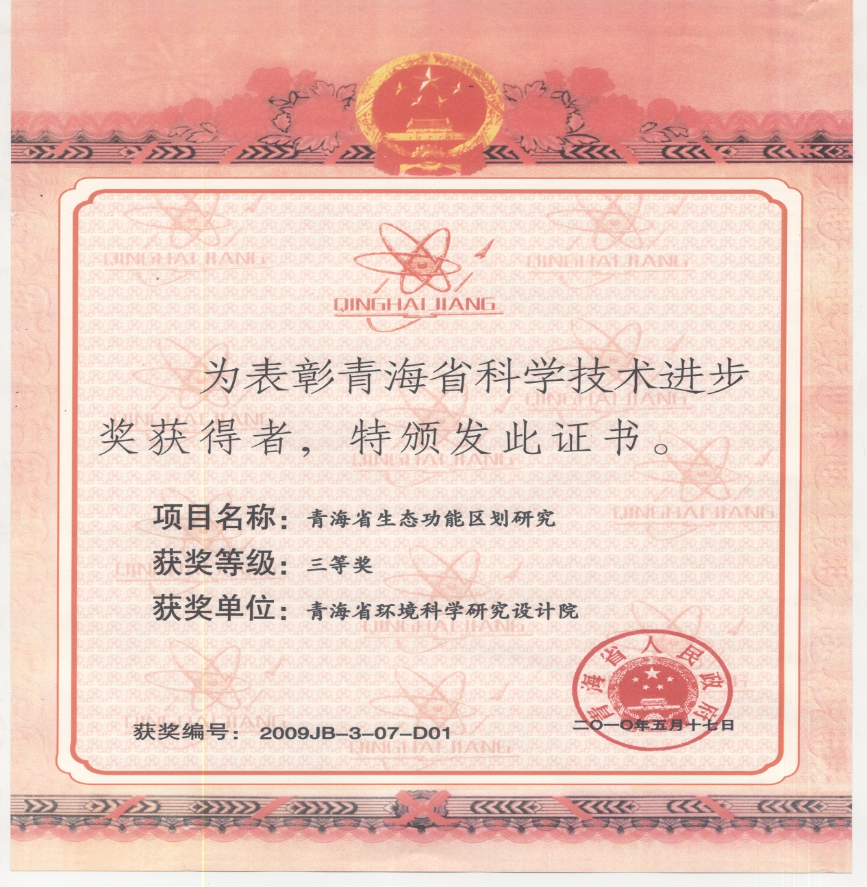 青海省科學技術(shù)進步獎三等獎,青海省人民政府頒發(fā),2010年5月17日