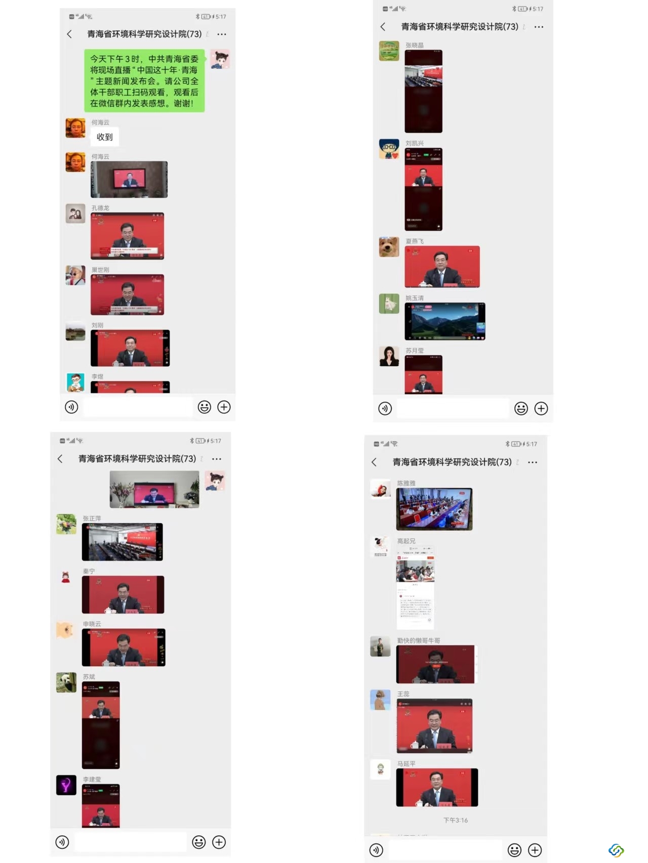 黨支部書記何海云同志表示,觀看了“中國這十年·青?!敝黝}新聞發(fā)布會倍感振奮。青海省委書記信長星同志從生態(tài)文明建設(shè)、高質(zhì)量發(fā)展提質(zhì)增效、精準(zhǔn)脫貧全面勝利、民族團(tuán)結(jié)進(jìn)步碩果累累、黨的建設(shè)全面加強(qiáng)等方面詳細(xì)介紹新時(shí)代這十年青海牢記囑托闖新路的光輝歷程和巨大成就,必將進(jìn)一步凝聚起全省上下奮力開創(chuàng)大美青海現(xiàn)代化建設(shè)新篇章的強(qiáng)大力量。公司將始終堅(jiān)持以習(xí)近平新時(shí)代中國特色社會主義思想為指導(dǎo),始終牢記習(xí)近平總書記的殷切囑托,堅(jiān)持以高質(zhì)量黨建引領(lǐng)高質(zhì)量發(fā)展,圍繞生態(tài)保護(hù)“國之大者”“省之大要”的根本任務(wù),強(qiáng)化自身環(huán)境科學(xué)技術(shù)優(yōu)勢,不斷深化國企改革三年行動,注重人才培養(yǎng)、科學(xué)研究、專業(yè)技術(shù)服務(wù)等方面協(xié)調(diào)發(fā)展,發(fā)揮國企環(huán)保科技工作者的有力作為和國有企業(yè)的使命擔(dān)當(dāng),以更加飽滿的工作熱情和更加奮發(fā)有為的工作態(tài)度,為保障公司高質(zhì)量發(fā)展貢獻(xiàn)自己的力量,在青海新的黃金十年再建新功,以優(yōu)異成績迎接黨的二十大勝利召開。